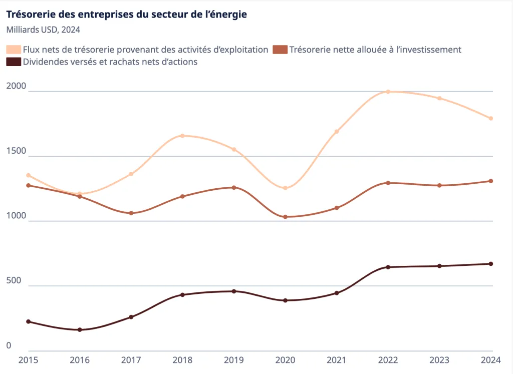 $671 milliards USD, c’est le montant consacré aux dividendes et aux rachats d’actions par les sociétés cotées du secteur de l’énergie en 2024, soit trois fois plus qu’en 2015, tandis que l’activité d’investissement est restée stable