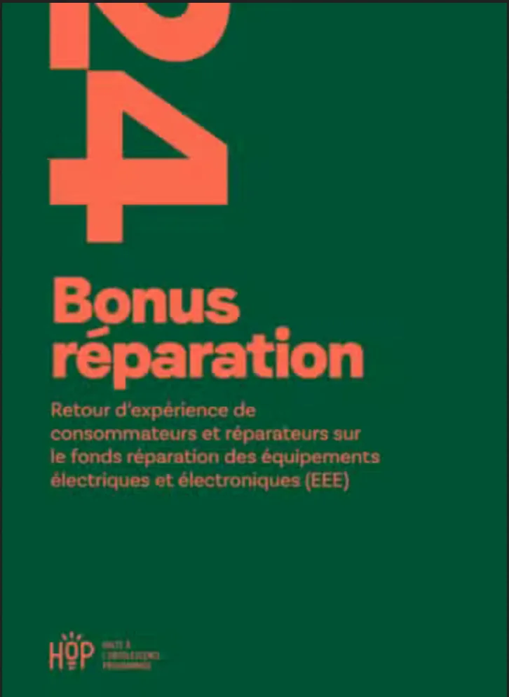 L’association avait par exemple obtenu le doublement des montants des bonus sur les téléviseurs et les gros électroménagers, l’ouverture du bonus aux casses d’écran, mais aussi la tenue régulière d’un Conseil national de la réparation multi-parties prenantes, et des efforts de communication avec l’appel à des campagnes d’ampleurs par les éco-organismes ou l’État. HOP participe chaque année à faire connaître l'aubaine du bonus réparation auprès des citoyens, à l’occasion des Journées nationales de la réparation qu’elle co-organise.