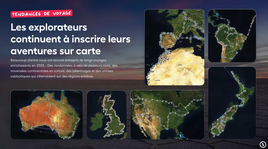 Grâce à une technologie et un design novateurs, cette application tout-en-un permet de créer des itinéraires, de cartographier en temps réel les parcours des voyageurs à travers le monde et offre une nouvelle façon de partager ses
