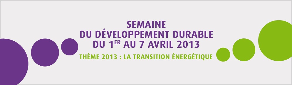 Comme chaque année, le ministère de l’Écologie donne rendez-vous à l’occasion de la Semaine du développement durable, du 1er au 7 avril 2013, à tous les acteurs du développement durable : collectivités, associations, entreprises, administrations, établissements scolaires…